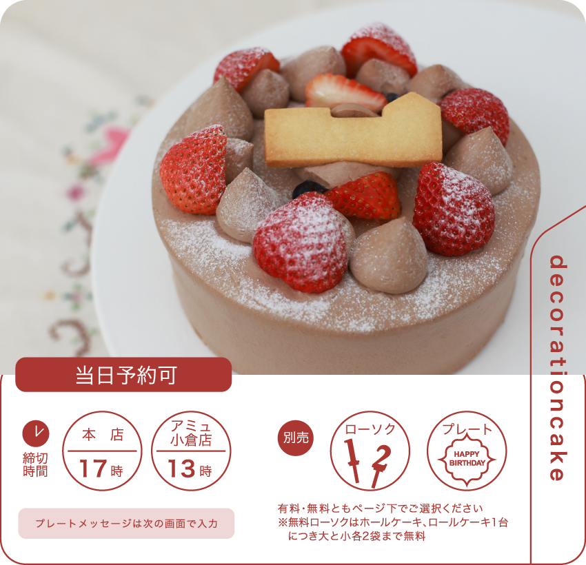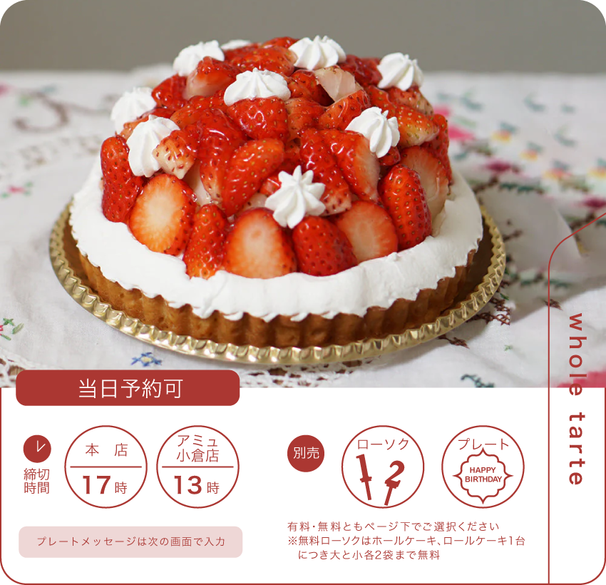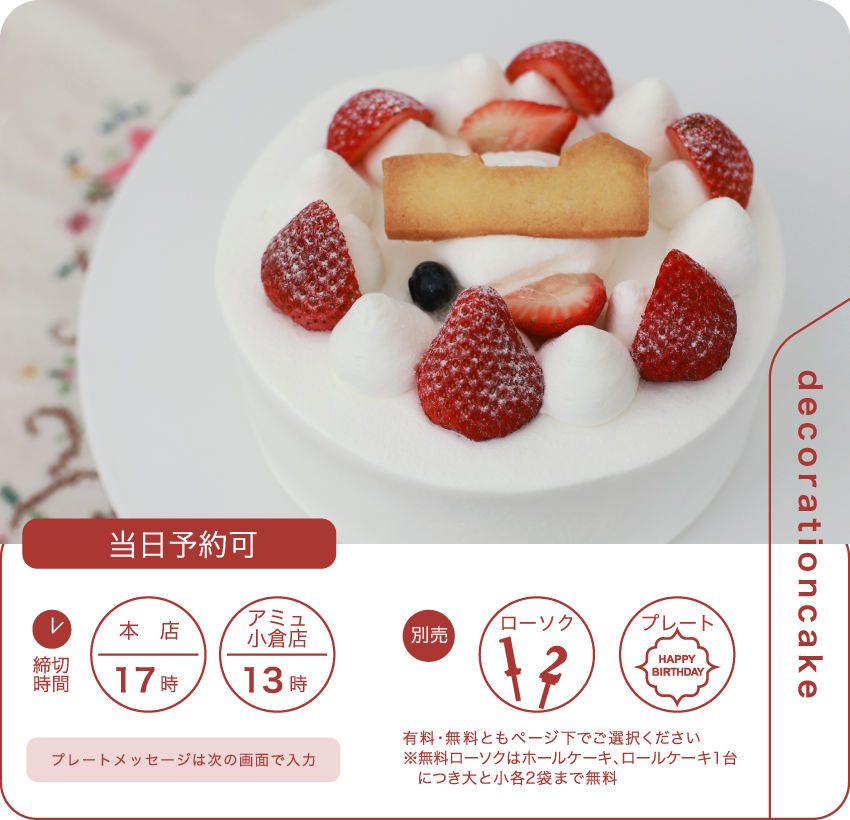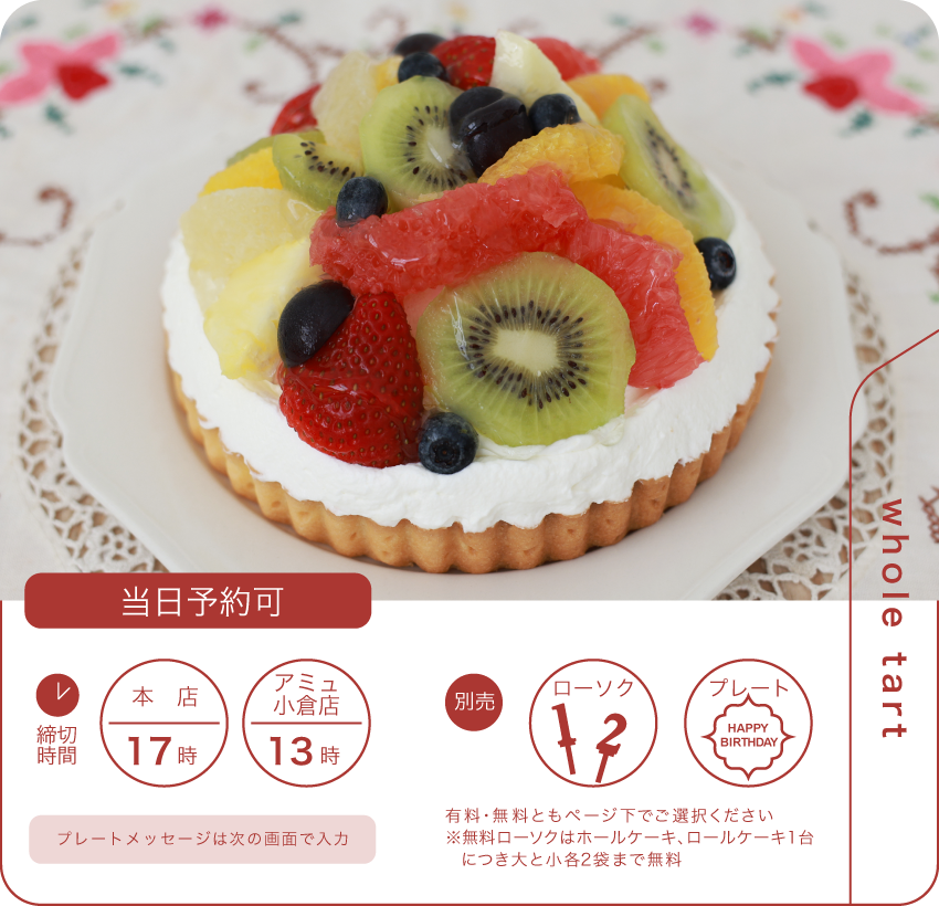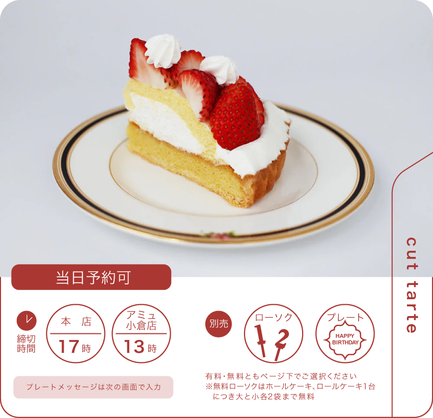 引き取り予定日前日・当日のご注文内容変更、およびキャンセルは出来かねます。また、いかなる場合でも上記日時のご注文キャンセルは、キャンセル料金をいただきます。ご了承ください。